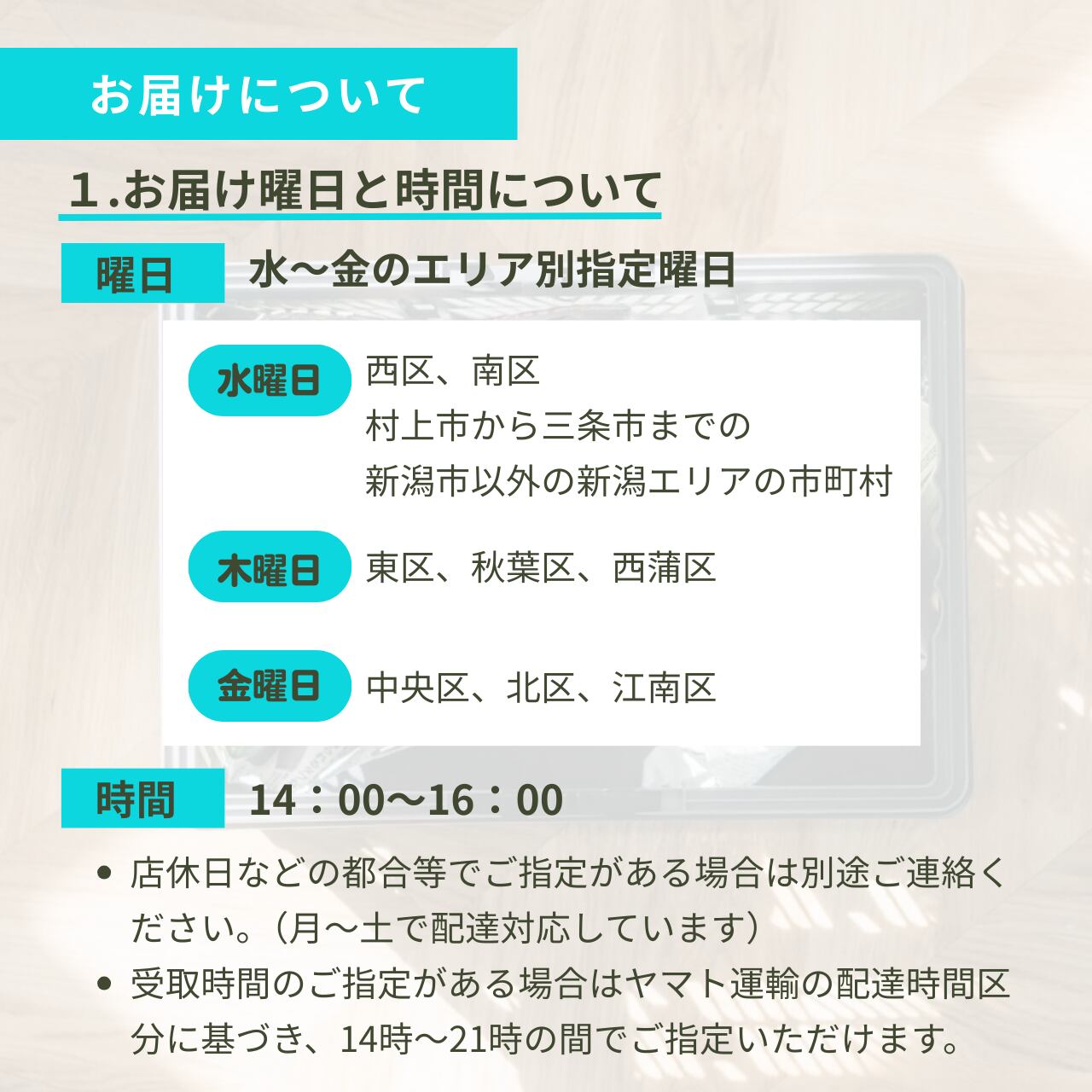 新潟で採れた季節の野菜や果物6種類程度を毎週あなたの職場にお届けします。